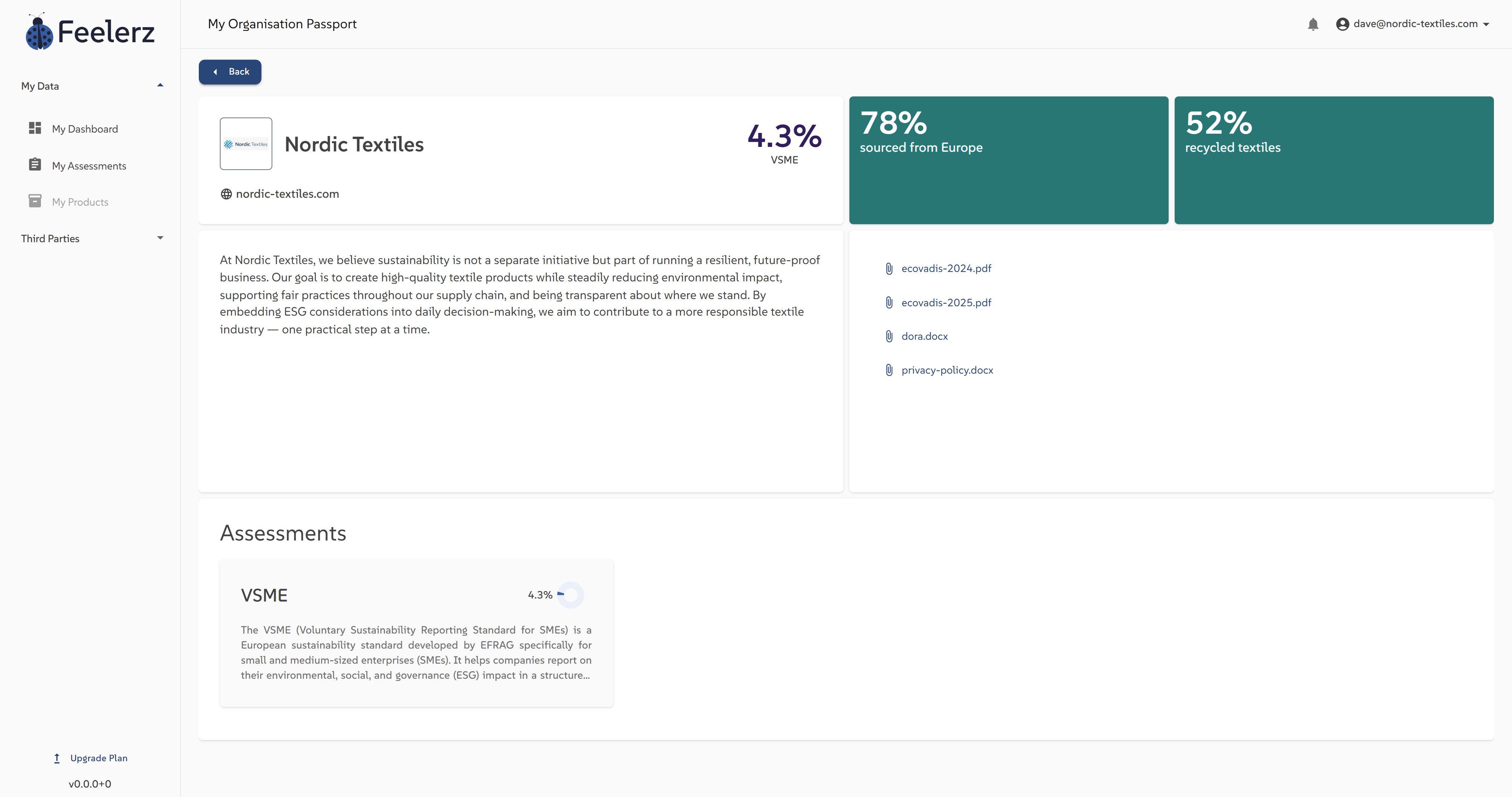 Your Organization Passport is a single, shareable overview of your company’s sustainability profile designed to replace scattered files, spreadsheets, and questionnaires.